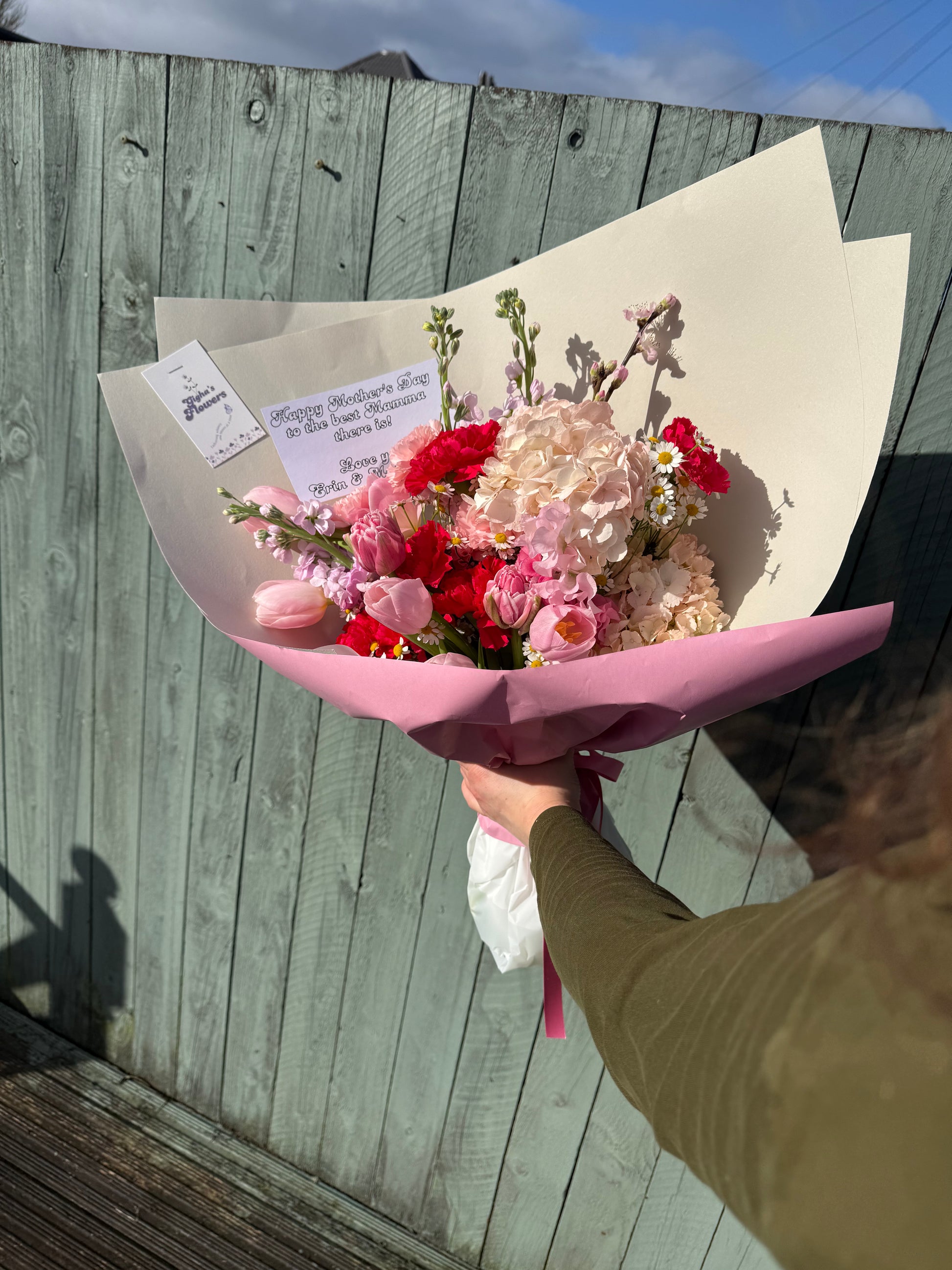 Available for collection or local delivery on or around 15th March (14-15th March) Please specify which date is required as well as your message to include in the comments or email us gighasflowers@gmail.com)